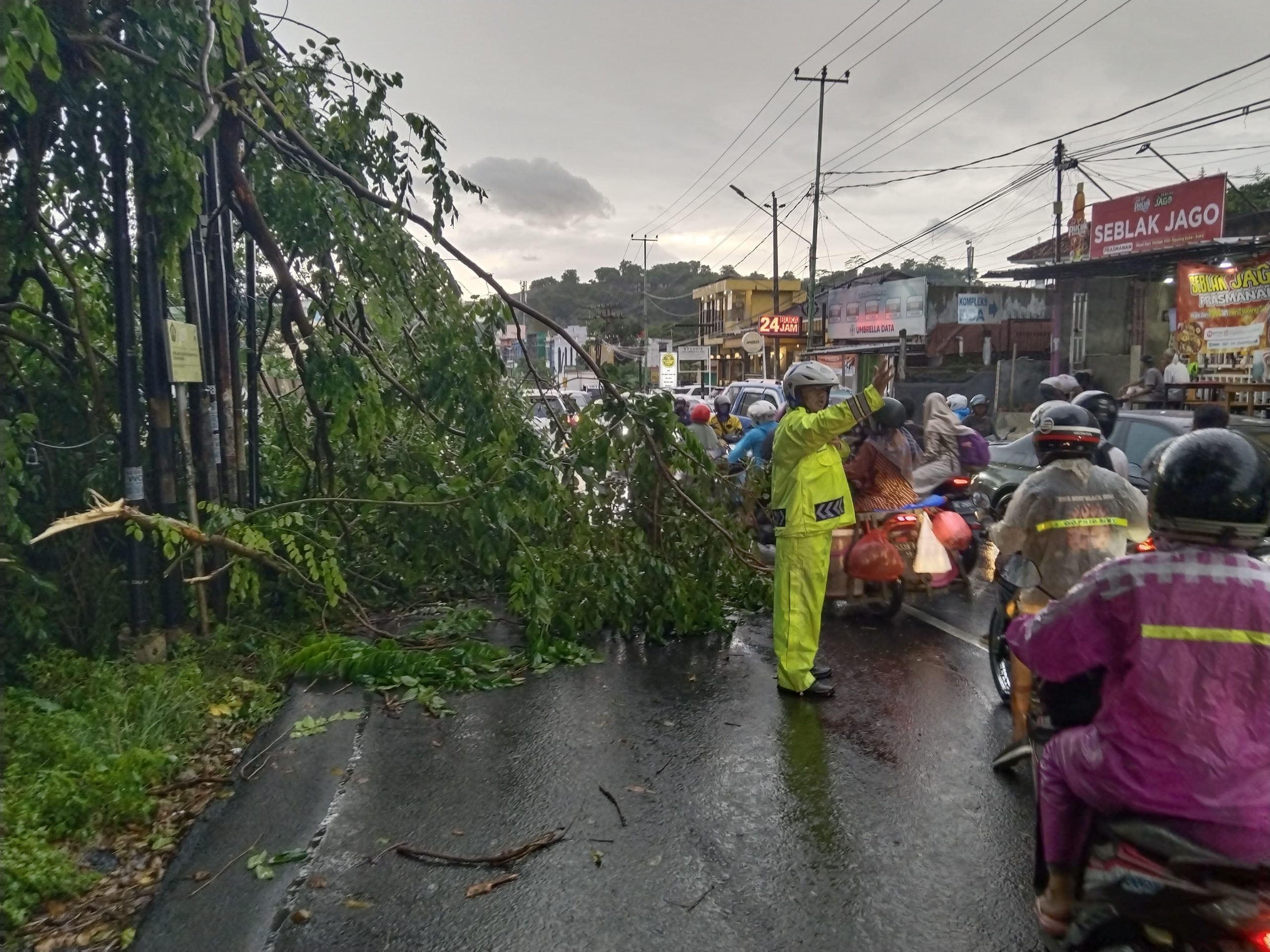 “Jika melihat pohon tumbang yang menghalangi jalan atau ada kabel listrik putus, segera laporkan ke pihak berwenang agar bisa segera ditangani dan tidak membahayakan warga,” tegasnya.