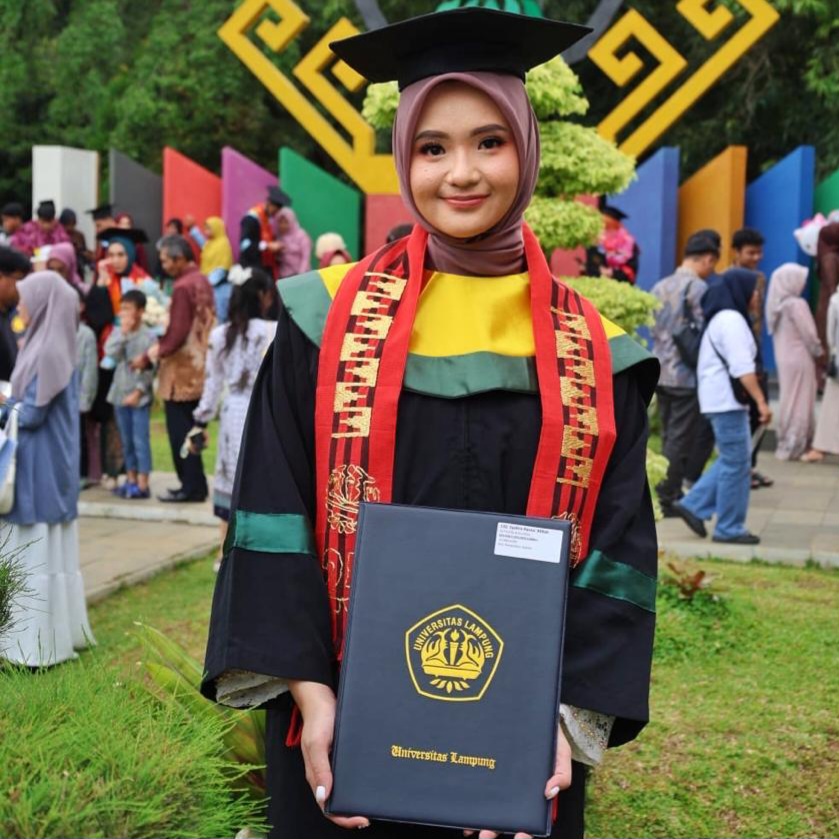 Syafira Hasna Afifah berhasil menyelesaikan program studi kedokteran di Universitas Lampung (Unila) berkat program unggulan Bupati dan Wakil Bupati Lampung Barat, Hasna Afifah mahasiswa fakultas pendidikan dokter angkatan 2021, berhasil menyelesaikan studinya di tahun 2025.