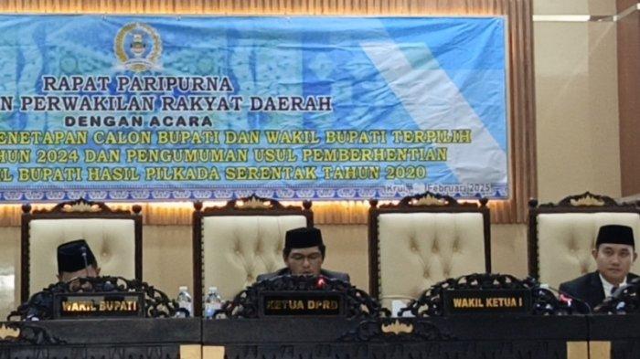 PusaranNews.com, Pesisir Barat – Dewan Perwakilan Rakyat Daerah atau DPRD Pesisir Barat Lampung gelar paripurna pengumuman hasil penetapan Bupati dan Wakili Bupati terpilih hasil Pilkada 2024 dan usul perhentian Bupati dan Wabup hasil Pilkada 2020, Jumat (07/02/2025).