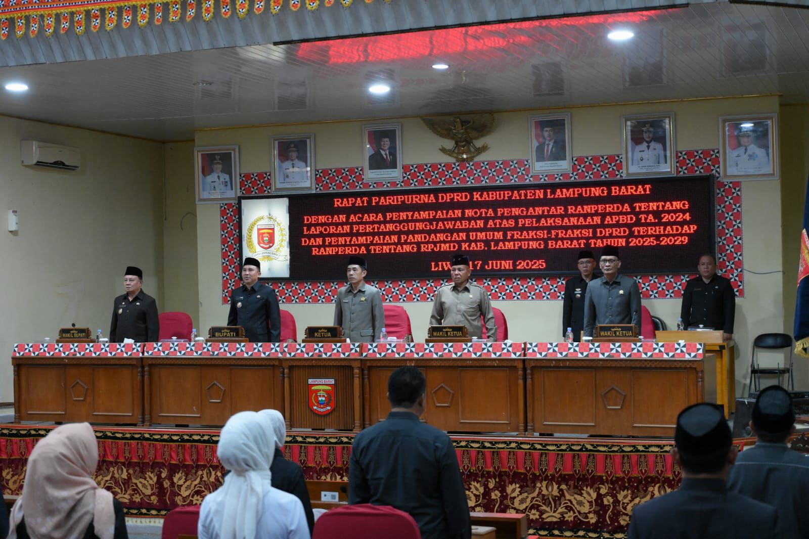 “Kami mengucapkan terima kasih yang sebesar-besarnya kepada Bupati, Wakil Bupati, seluruh anggota DPRD, jajaran OPD, dan para tamu undangan yang telah mengikuti jalannya rapat paripurna ini dengan penuh semangat dan tanggung jawab. Semoga seluruh proses yang kita jalani hari ini membawa manfaat besar bagi kemajuan Kabupaten Lampung Barat yang kita cintai bersama,” tutupnya. (*)