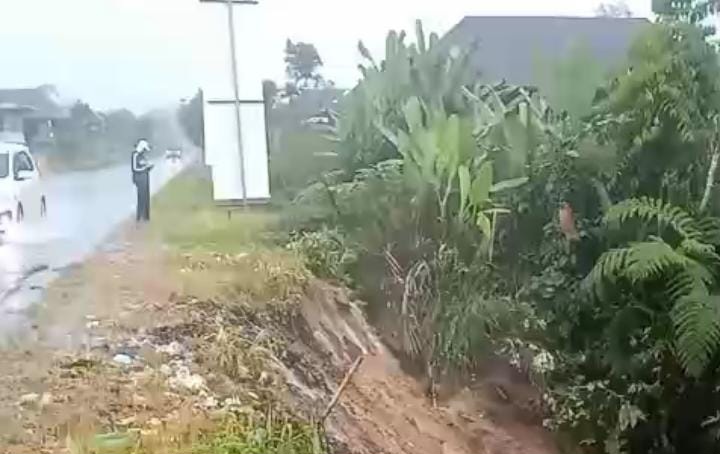 Masih kata Aruman, Longsor yang terjadi di samping masjid Al- Barokah II berukuran panjang lebih kurang 30 meter dan badan jalan juga ada retakan sehingga masih rawan terjadi longsor susulan.