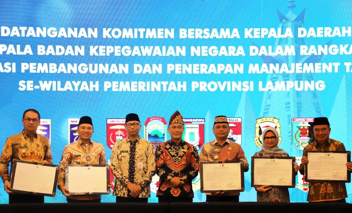 Acara ini dihadiri oleh Kepala BKN RI Prof. Dr. Zudan Arif Fakrulloh, S.H., M.H., Gubernur Lampung Rahmat Mirzani Djausal, serta seluruh kepala daerah kabupaten/kota se-Lampung.