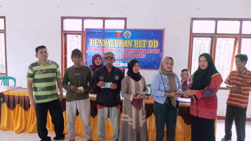 PusaranNews.com, Lampung Barat – Pemerintah Pekon Argo mulyo Kecamatan Batu Ketulis Kabupaten Lampung Barat,menyalurkan Bantuan Langsung Tunai Dana Desa (BLT DD) kepada 17 Keluarga Penerima Manfaat (KPM) Di Balai Pekon Setempat, Kamis 27 Oktober 2025